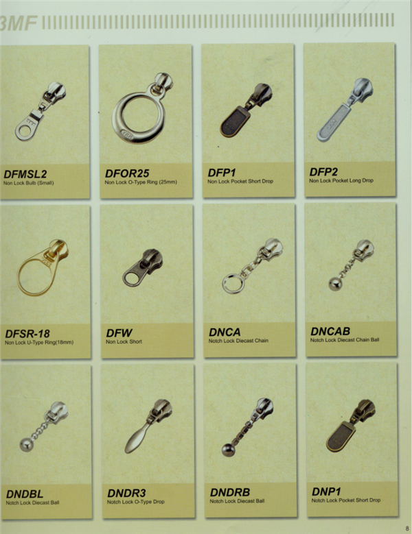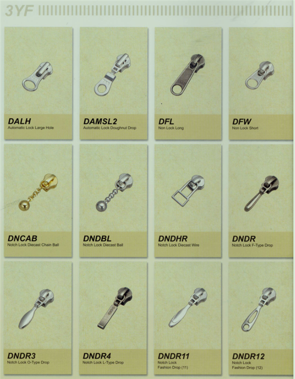 YKK樹脂牙拉鏈及拉頭、YKK金屬牙拉鏈及拉頭、YKK Y牙牛仔系列拉鏈等。